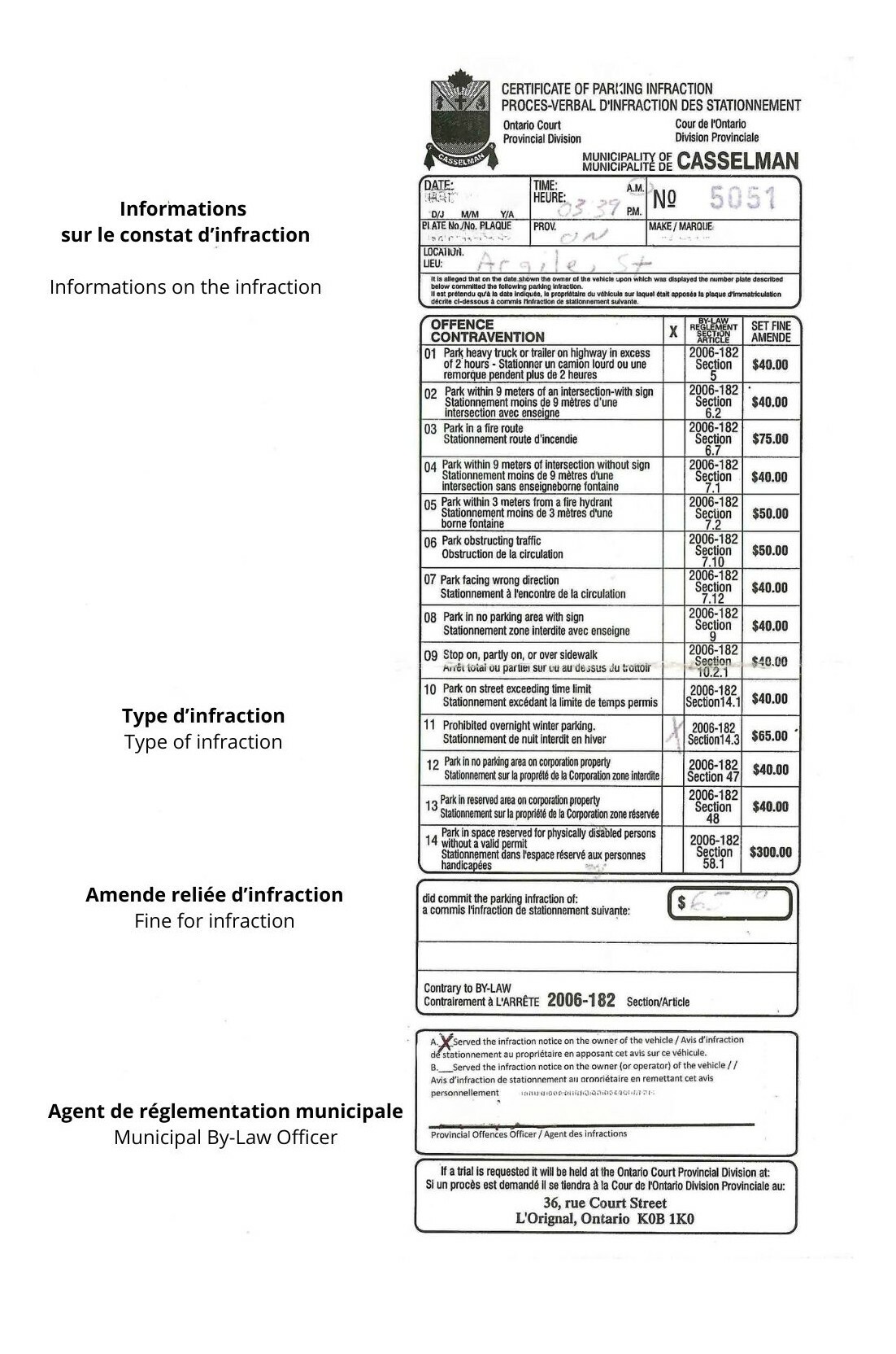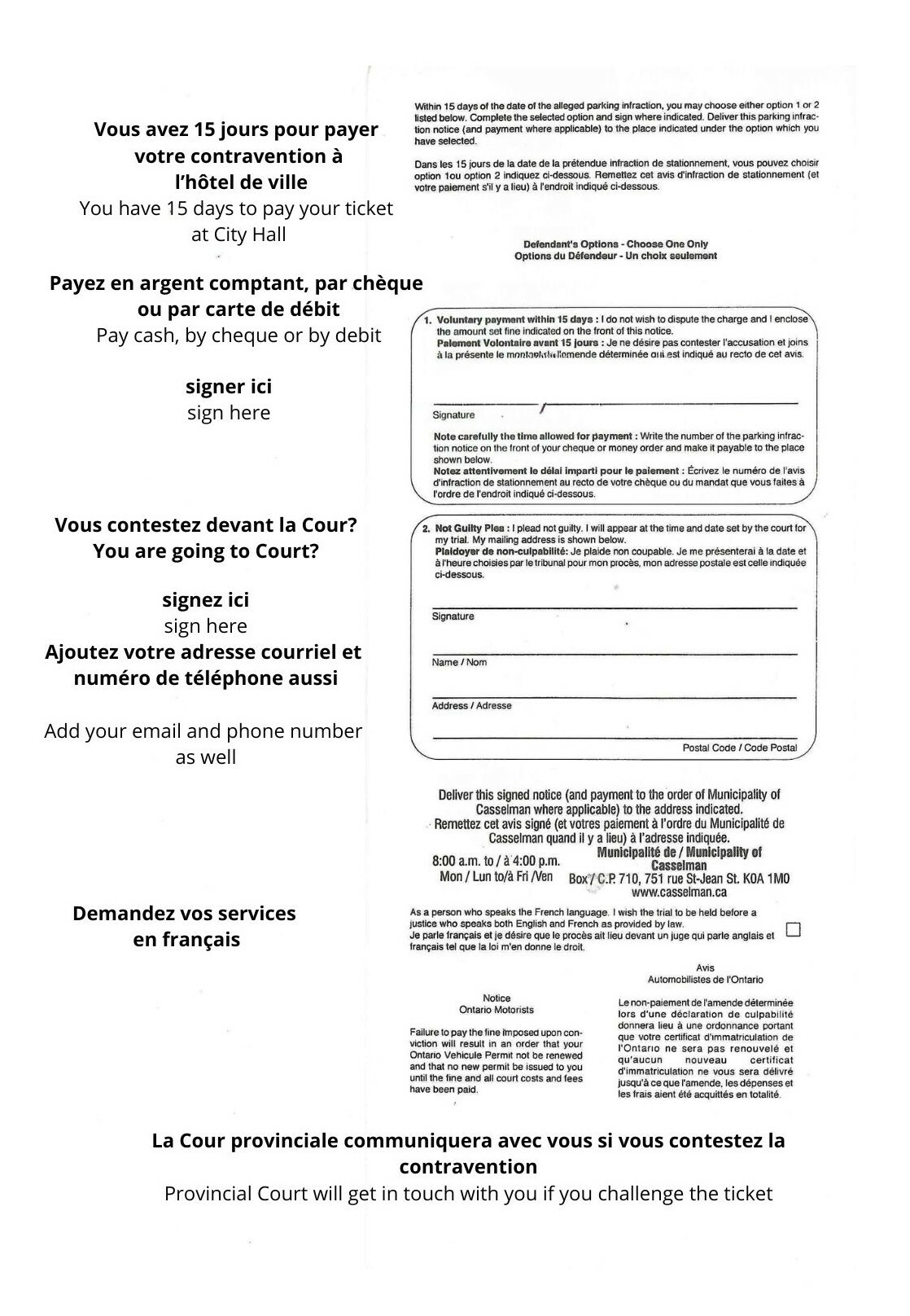The Municipality's regulatory officer is responsible for issuing tickets when a motorist fails to comply with parking regulations within the Municipality of Casselman. What should you do if you are found guilty of a violation? The process isn't rocket science.