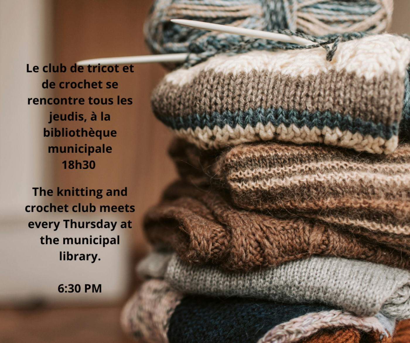 Le club de tricot et de crochet se rencontre tous les jeudis, à la bibliothèque municipale